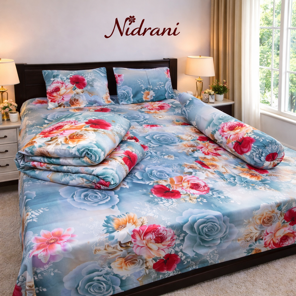 নিদ্রানী-এর এক্সক্লুসিভ বেডিং কালেকশন দিয়ে অনুভব করুন আরাম, সৌন্দর্য ও পরিশীলিত ফুলেল নান্দনিকতা—সব একসাথে।