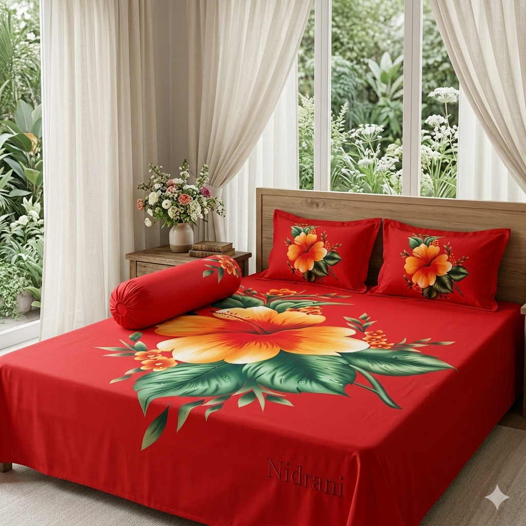 🌺 নিদ্রানী রক্তজবা প্যানেল বেডশিট