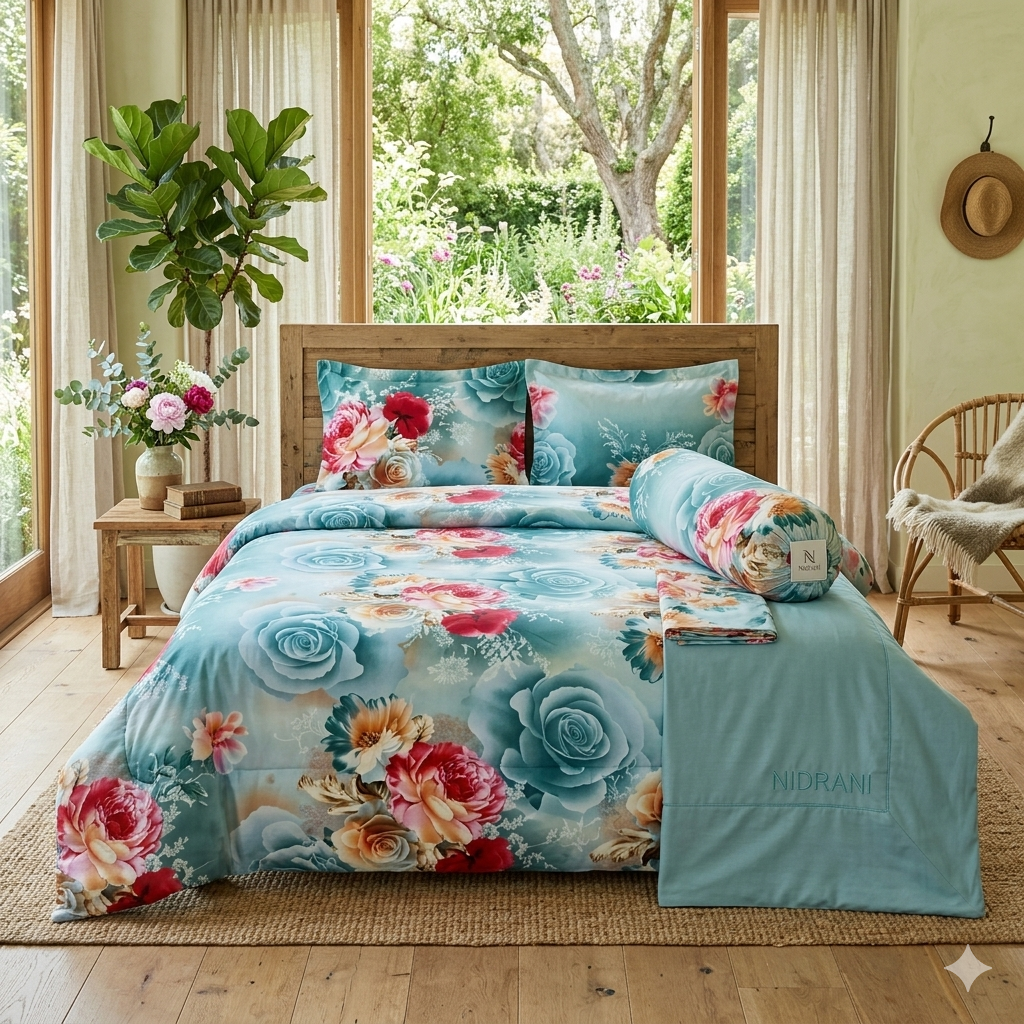 নিদ্রানী-এর এক্সক্লুসিভ বেডিং কালেকশন দিয়ে অনুভব করুন আরাম, সৌন্দর্য ও পরিশীলিত ফুলেল নান্দনিকতা—সব একসাথে।