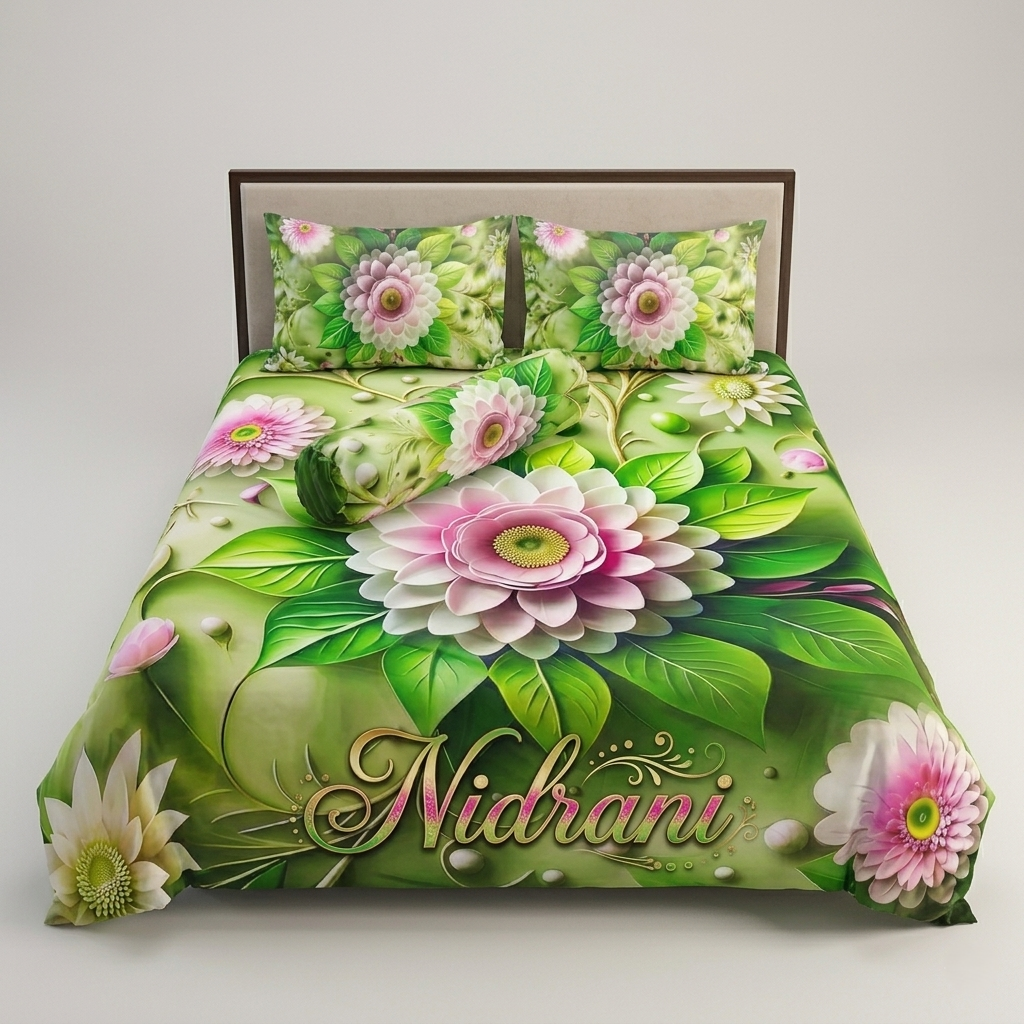 Transform Your Bedroom into a Dreamy Floral Sanctuary Bring the refreshing essence of nature into your home with the Nidrani Emerald Bloom Digital Print Bedsheet. Featuring a stunning 3D floral design on a lush green canvas, this bedsheet offers a perfect blend of modern artistry and botanical serenity.