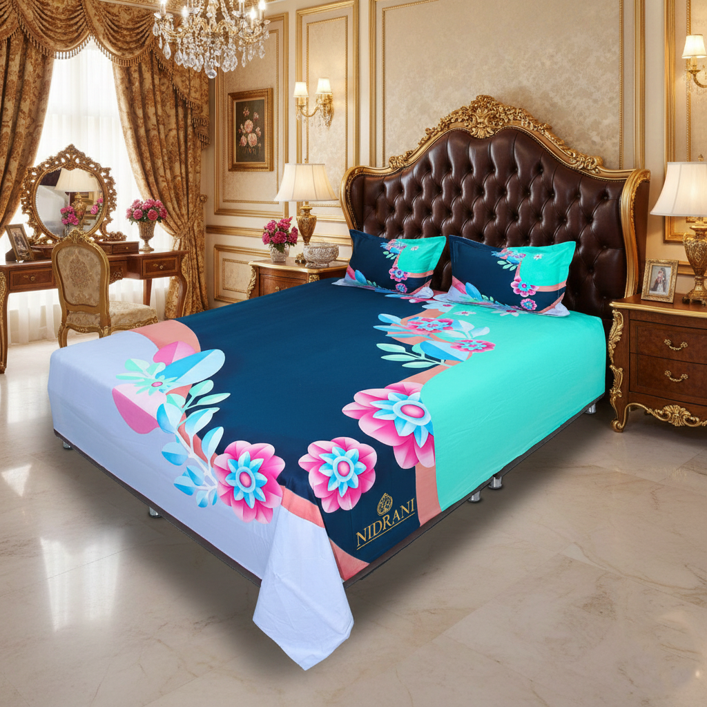 Elevate your bedroom with timeless elegance and royal charm. The NIDRANI Premium Royal Floral Bedsheet is designed to bring luxury, comfort, and refined beauty into your everyday living space.